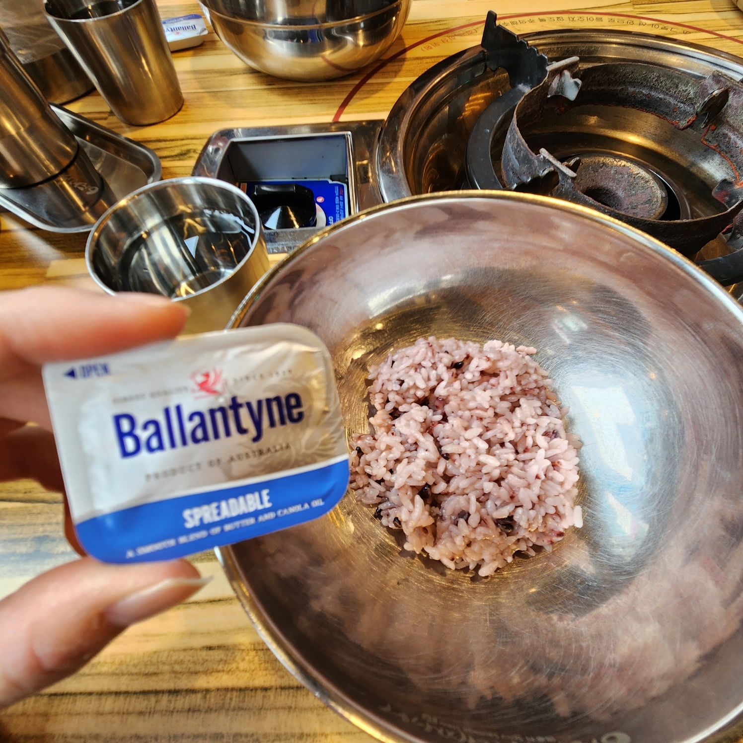 밥에 버터를 비비고