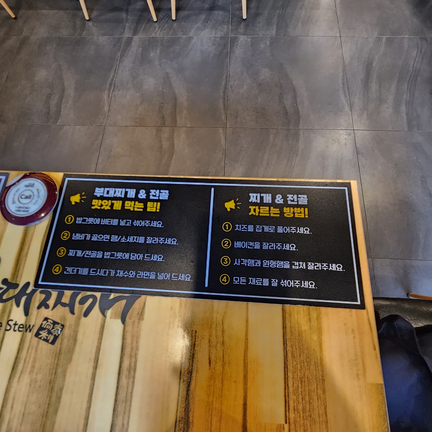테이블과 벽면 곳곳에 맛있게 먹는 팁도 붙어있어요