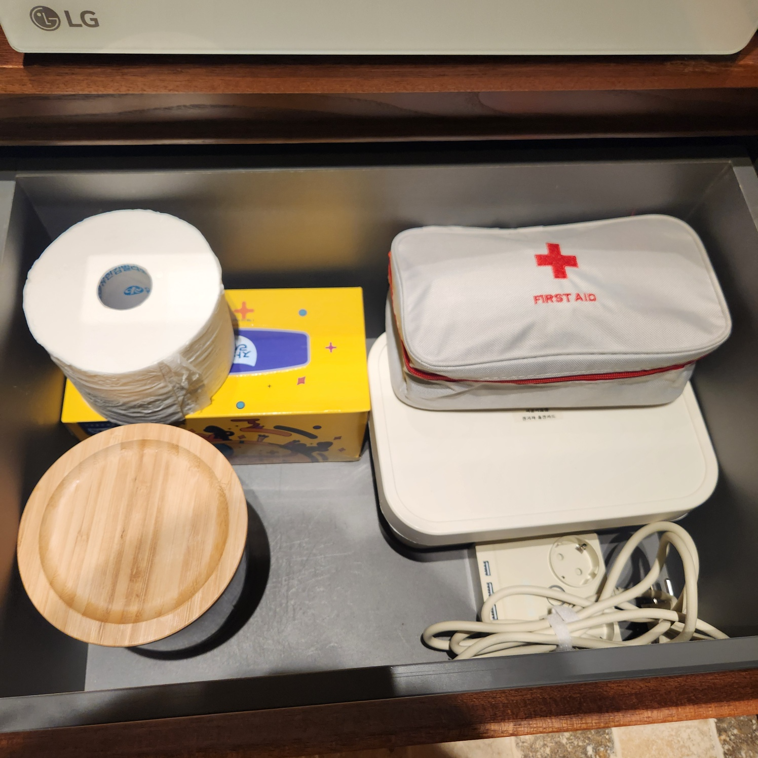 마찬가지로 화장실엔 핸드워시, 1회용 치약, 샴푸, 컨디셔너, 바디워시, 타월이 준비되어 있고