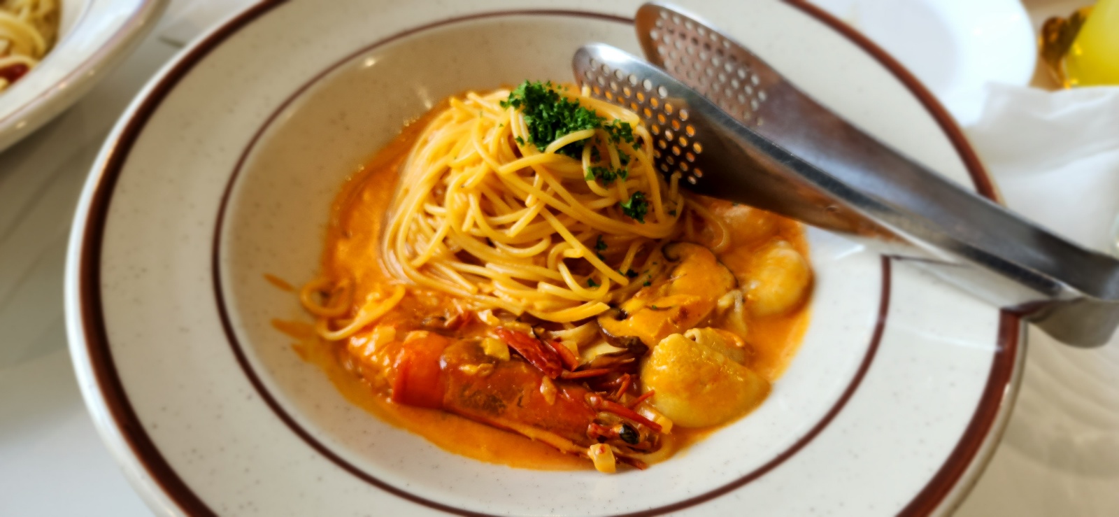 크림 메뉴를 시켜 느끼하진 않을까 싶어 주문한 로제파스타 감베로니.