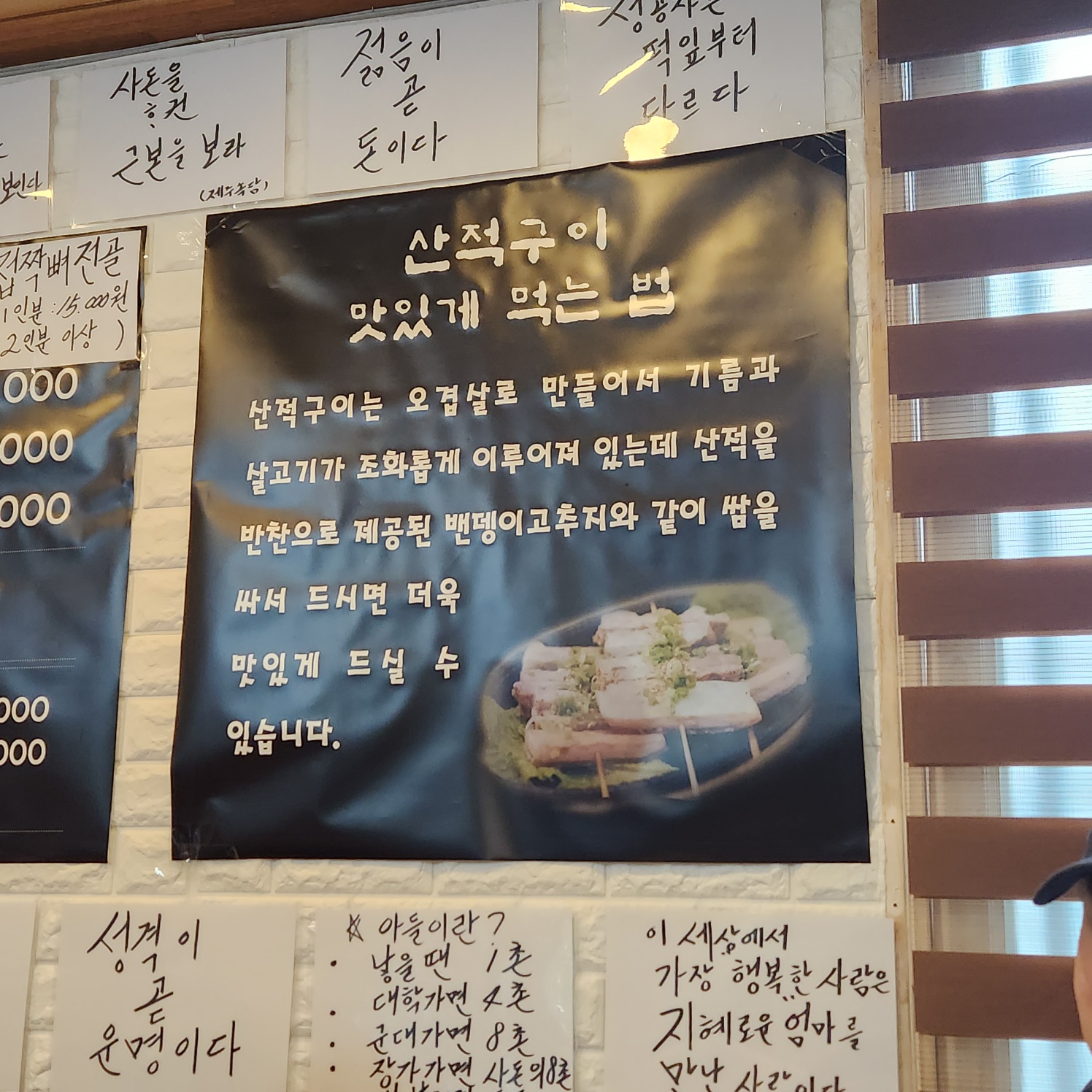 넉둥베기 식당 메뉴판