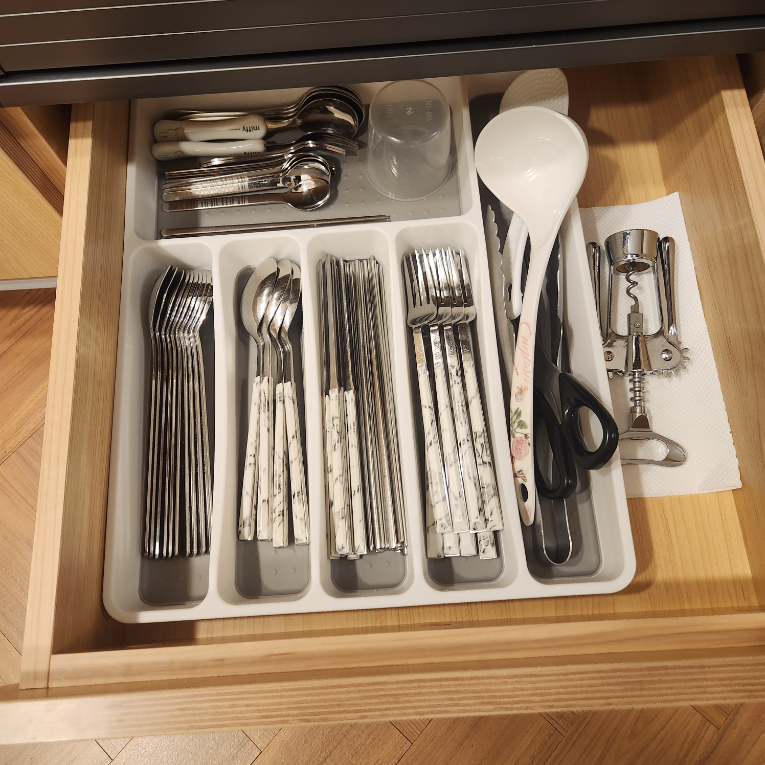 서랍엔 비품 여분이 마련되어 있고