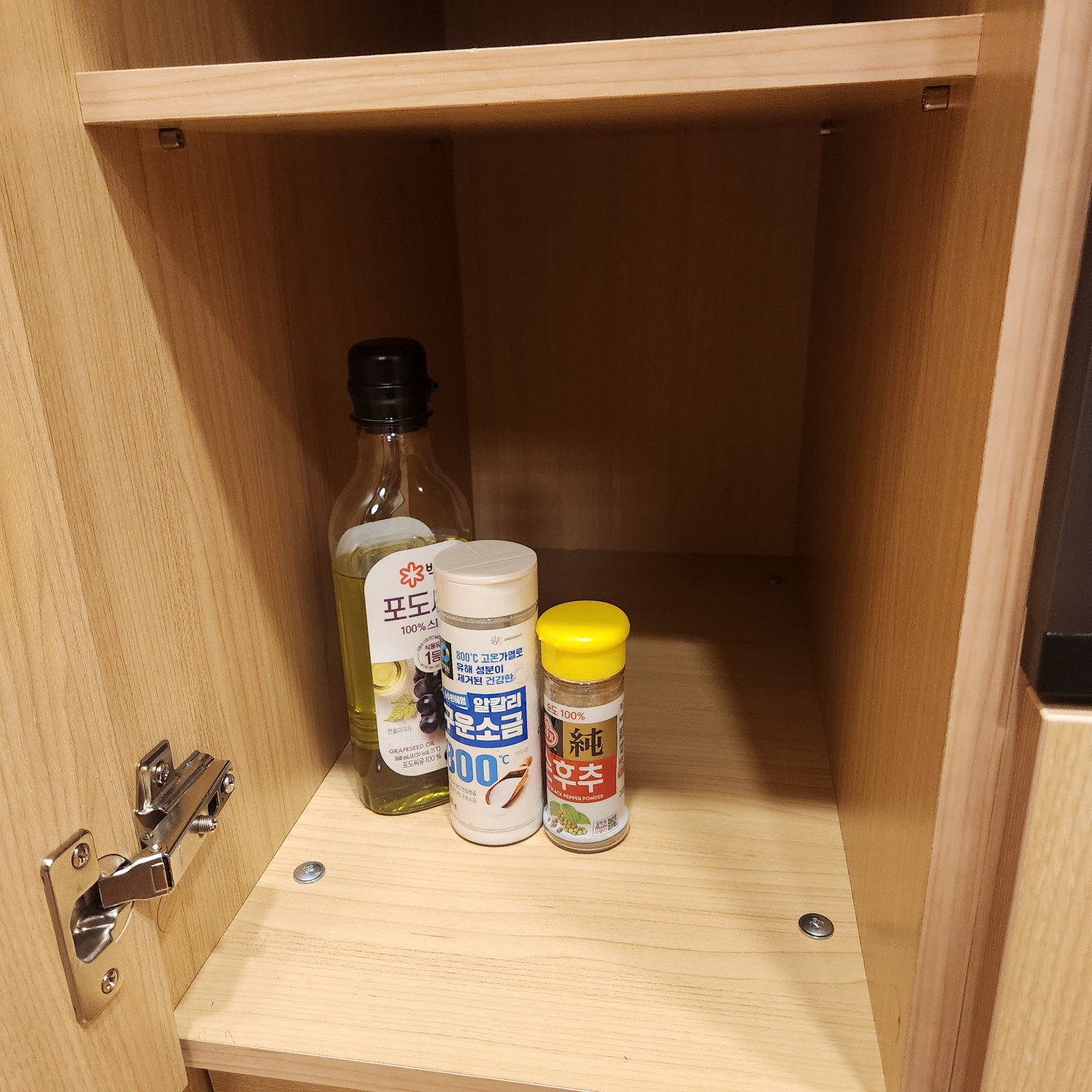 각종 식기들과 조리도구들 기본양념들도 준비되어 있어서