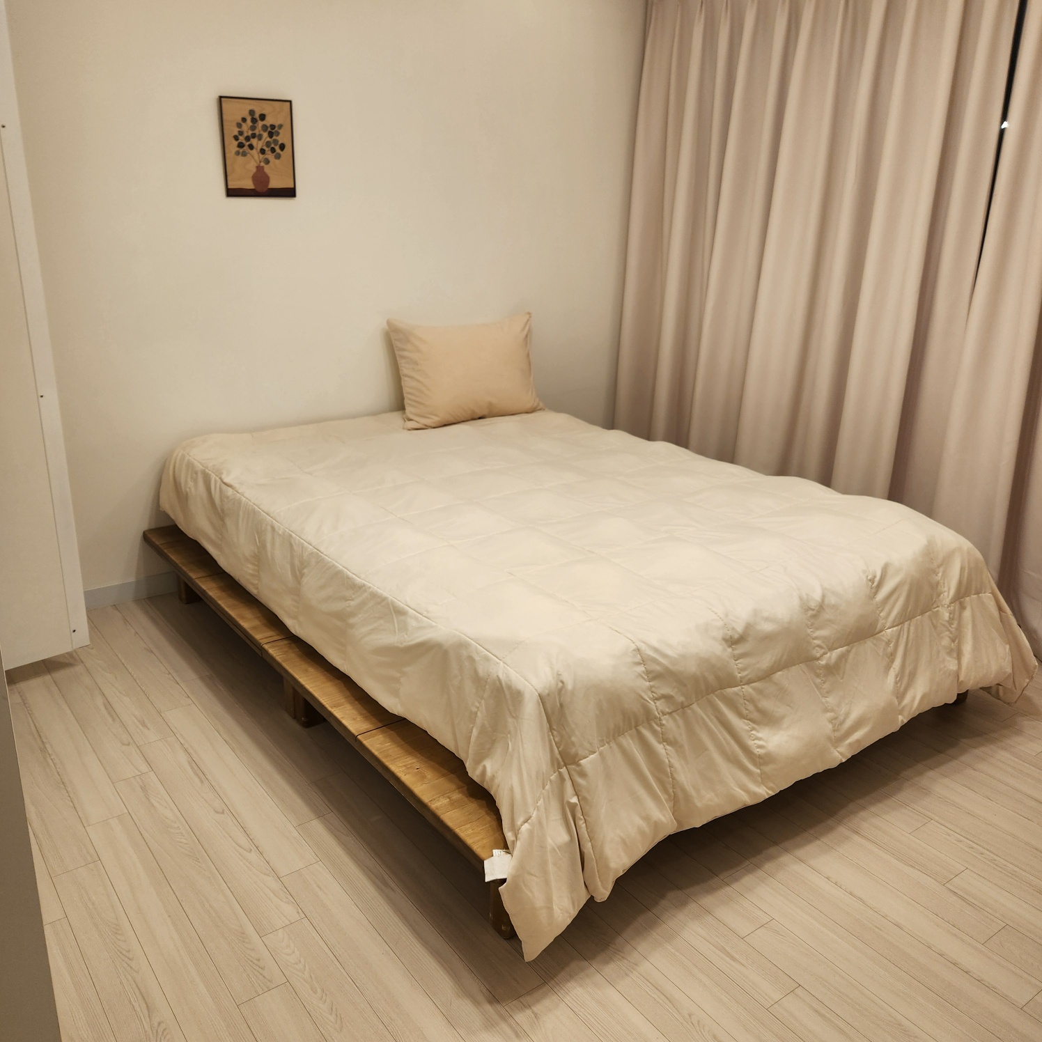 낮은 높이의 침대 하나가 있는 방!