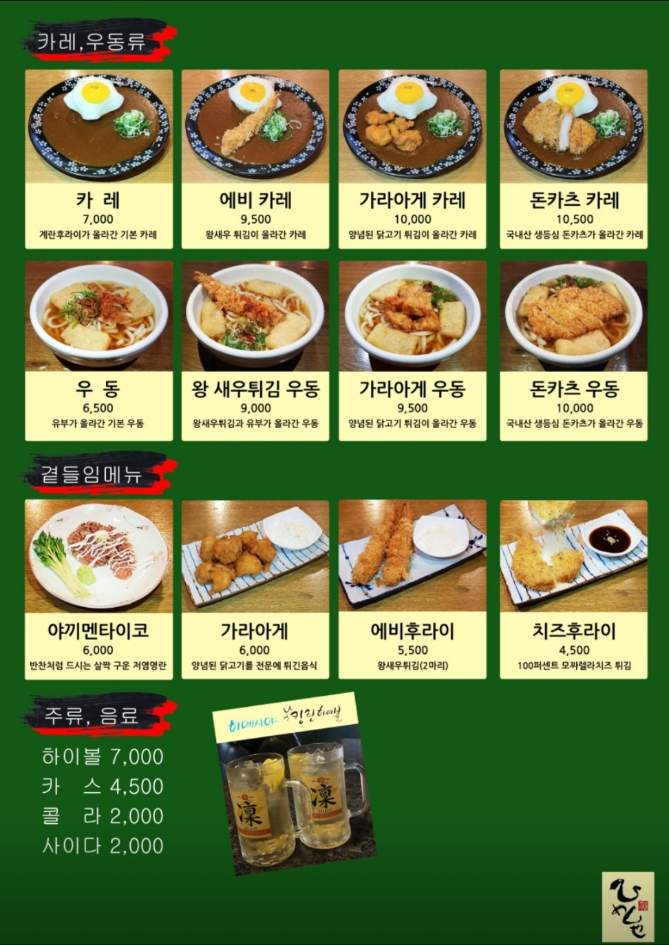 - 18,000원 이상 현금 결제 시 무료음료 제공 (미리 저거주세요~ 말씀해 주세요)