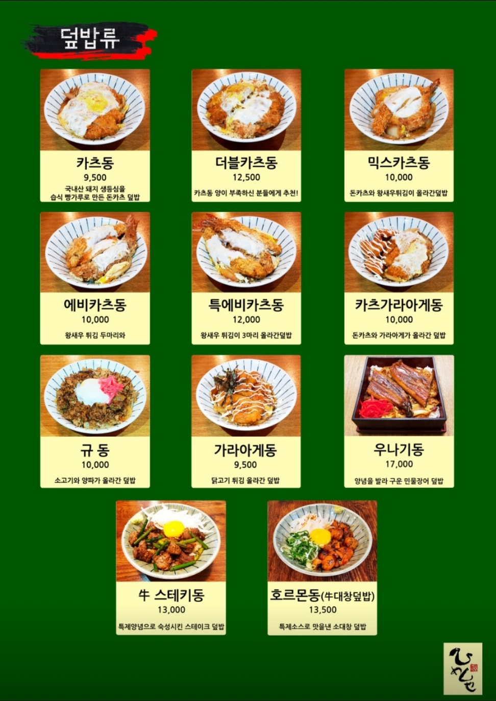 덮밥종류가 굉장히 다양해서