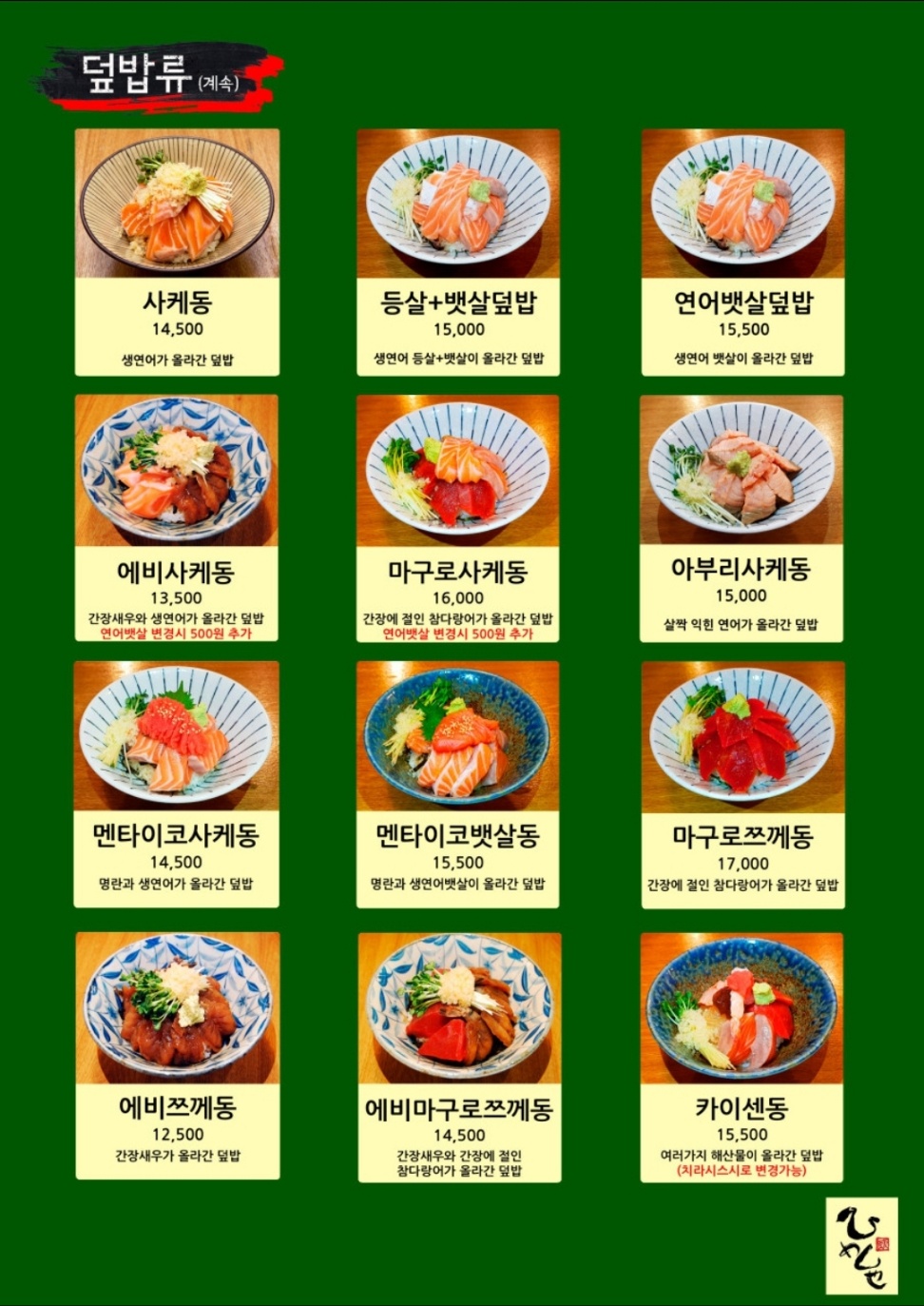 어김없이 이곳의 연어덮밥을 보고 이곳으로 결정했어요!