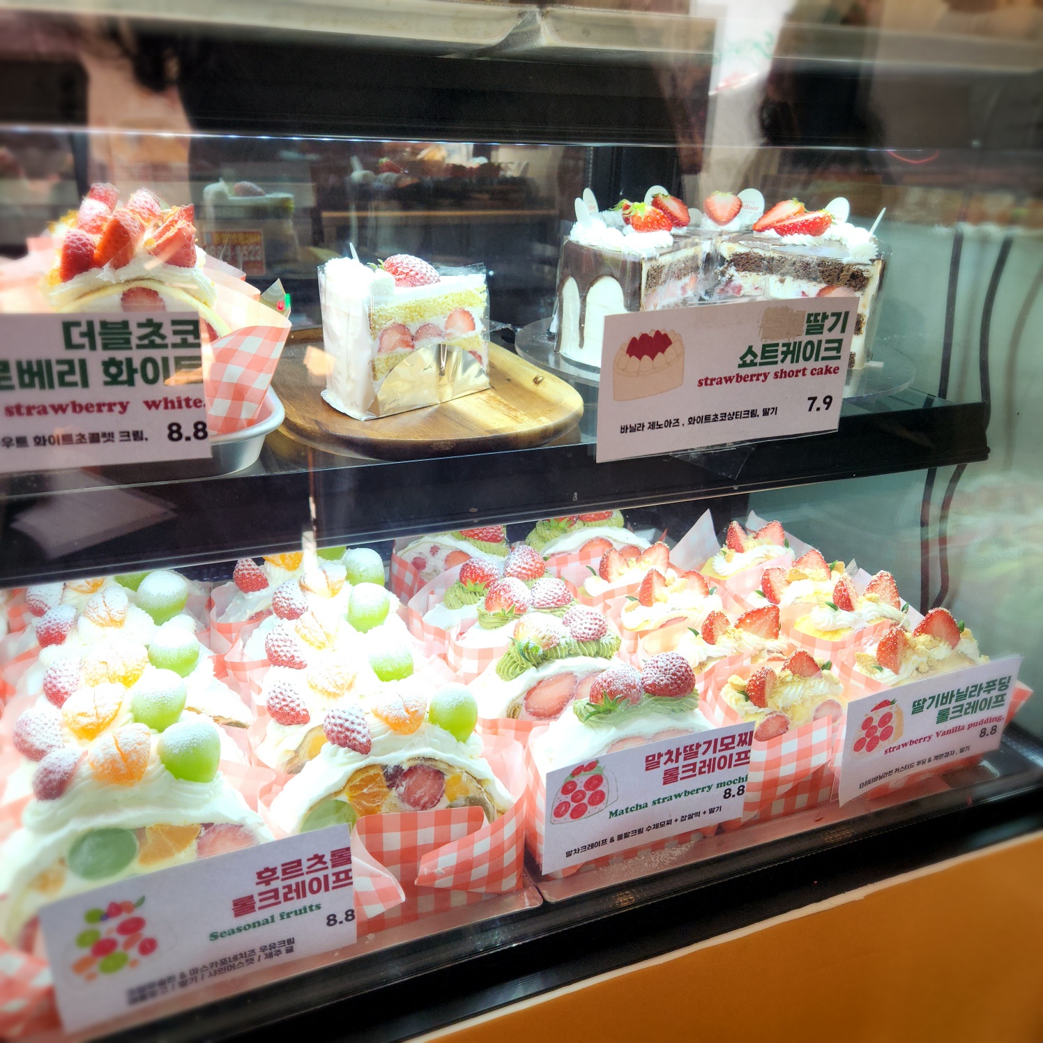 들어가면 보이는 알록달록 영롱한 롤크레이프 들입니다. 겉으로 보기에도 과일이 굉장히 꽉꽉 채워져 있습니다.
