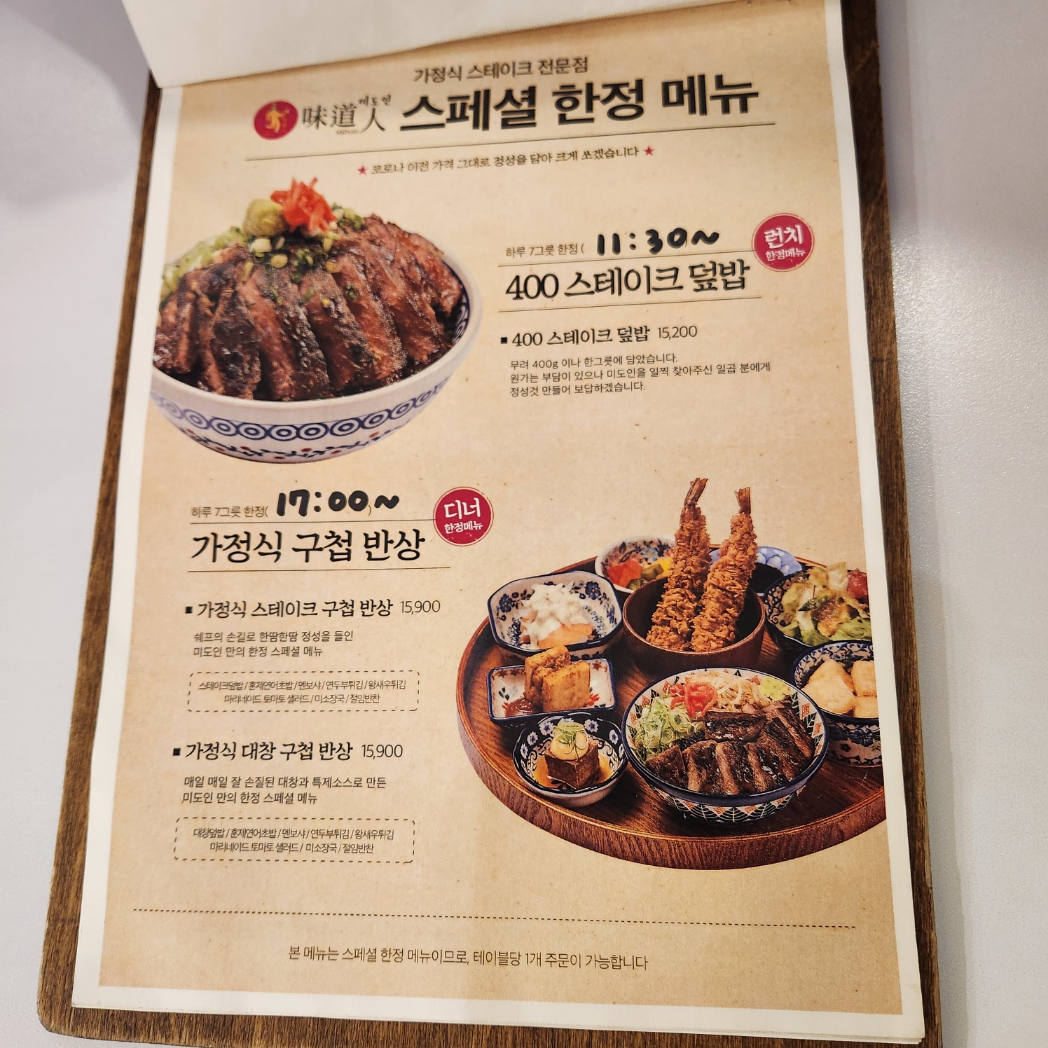 런치와 디너타임에 각각 스페셜 한정 메뉴를 판매하고 있는데