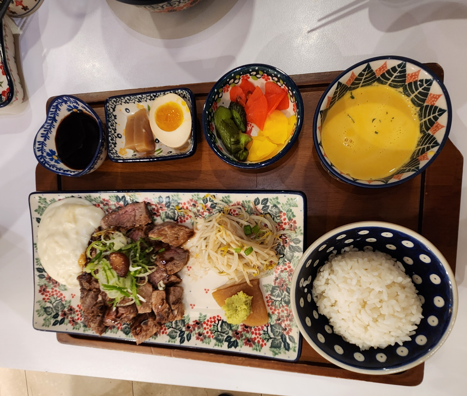 정갈한 한상차림으로 나온 트리플 스테이크예요