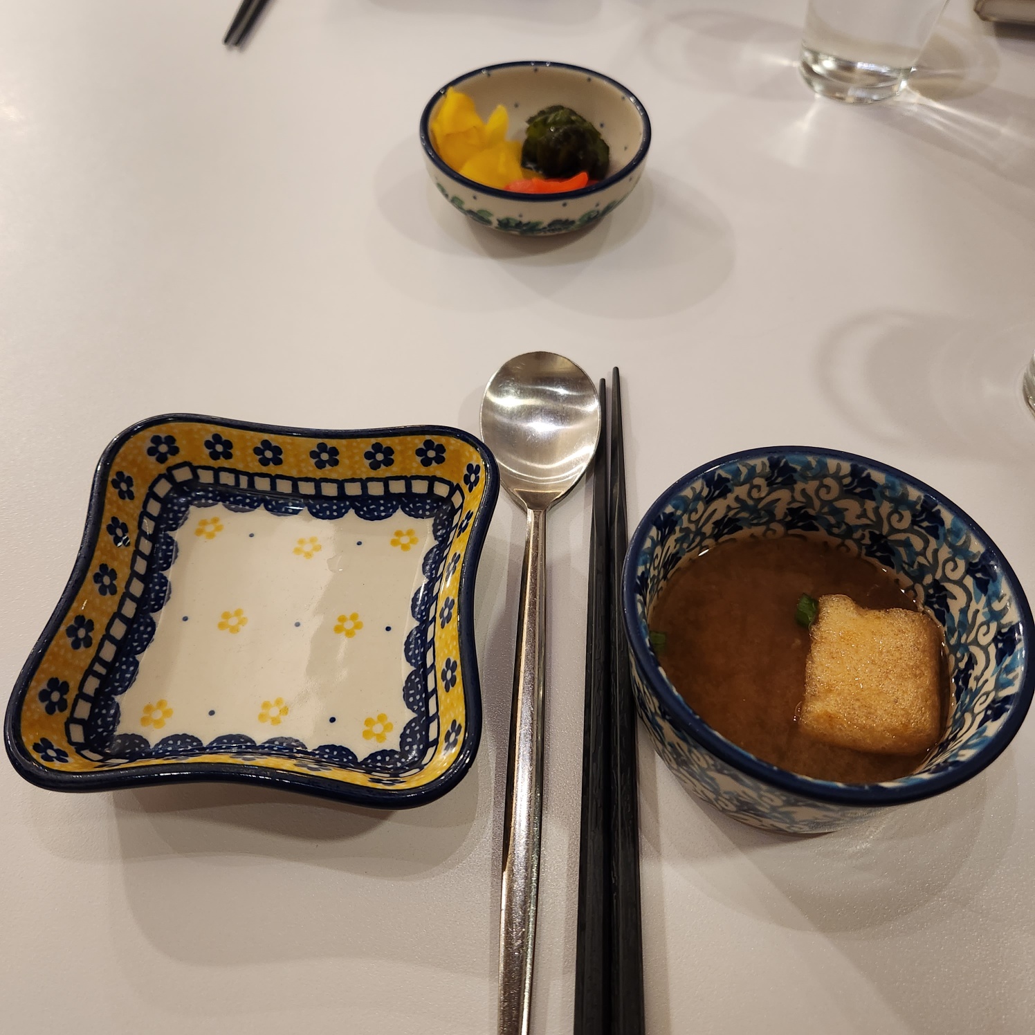 기본으로 된장국과 장아찌류 반찬이 나와요